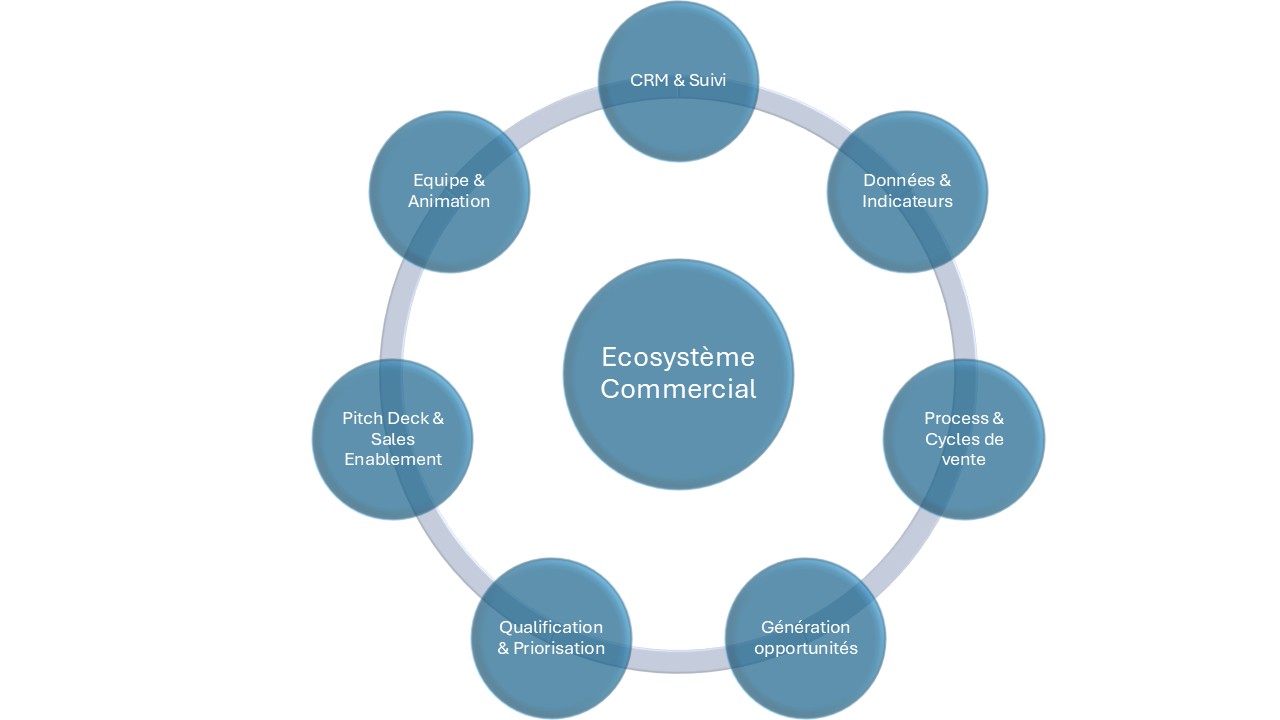 En interconnectant des outils, des processus et des routines, l'écosystème commercial vous permet de piloter la croissance de votre entreprise de manière cohérente, mesurable et performante.